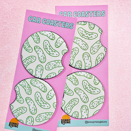2 Car Coasters, Minimalist Pickle Pattern