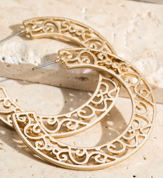Metal Filigree Hoop Earrings 174