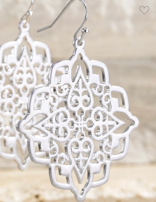Metal Spade Filigree Earrings 146