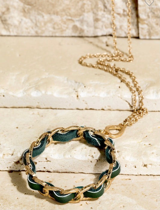 Chain and Faux Leather Hoop 163
