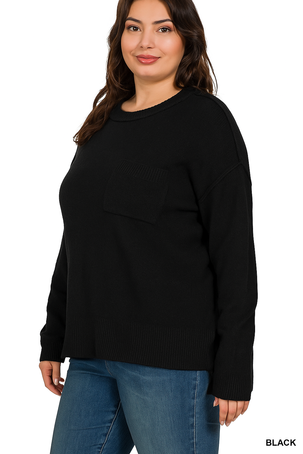 MELANGE HI-LOW HEM ROUND NECK SWEATER